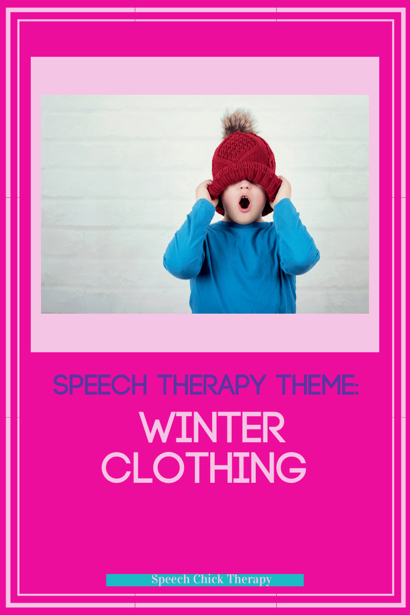 This week’s theme in speech therapy is winter clothing. Kind of inappropriate since my weather forecast predicts 70 degree temps by Tuesday! But the calendar says January so we are talking mittens, coats and scarves! We have a mix of old and new activities to use this week.