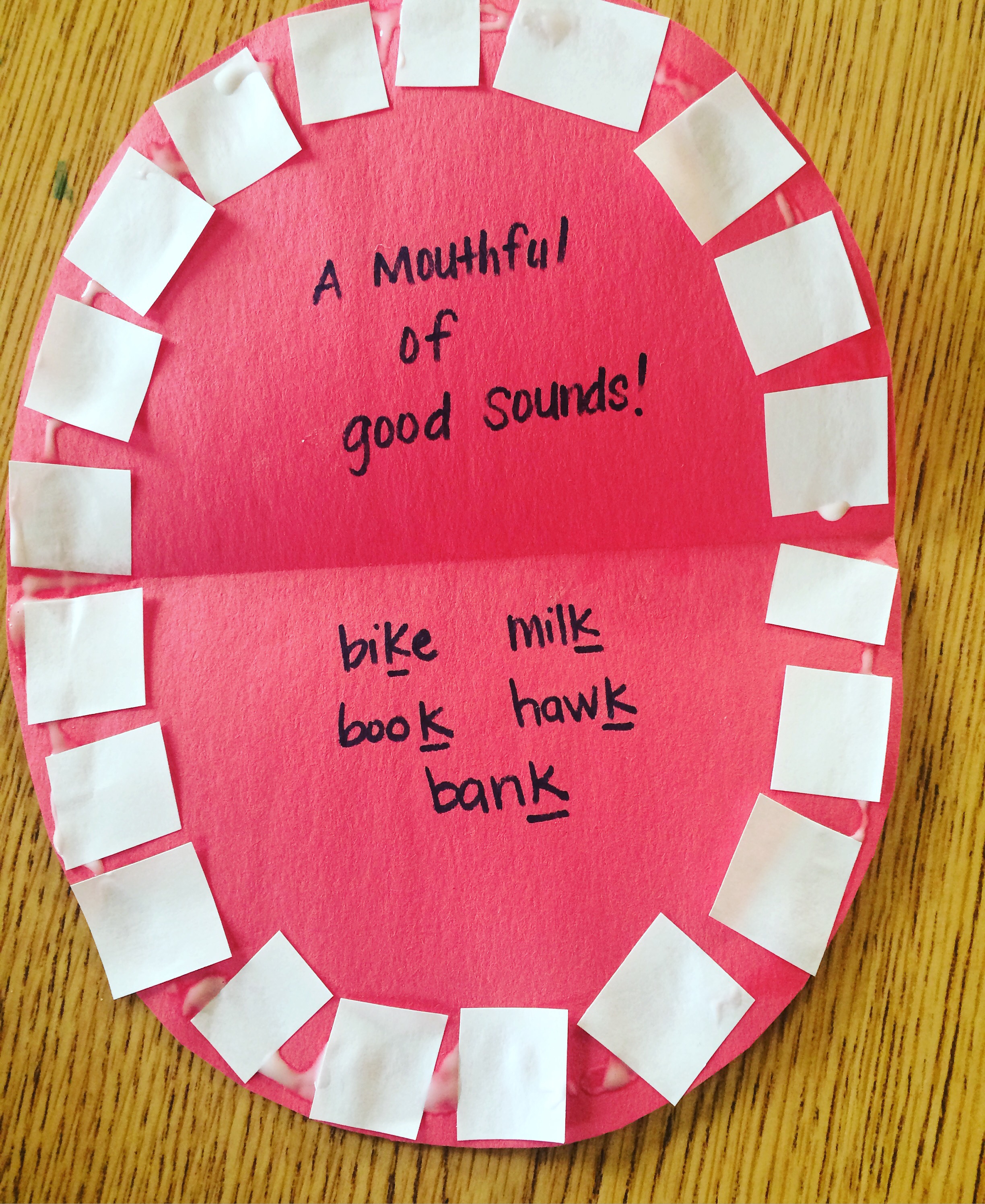 You can write target words on the teeth or in the mouth like I did. Each time the child said a word correctly 3-5x, he glued two teeth in the mouth. Repeat until the mouth is full of teeth!