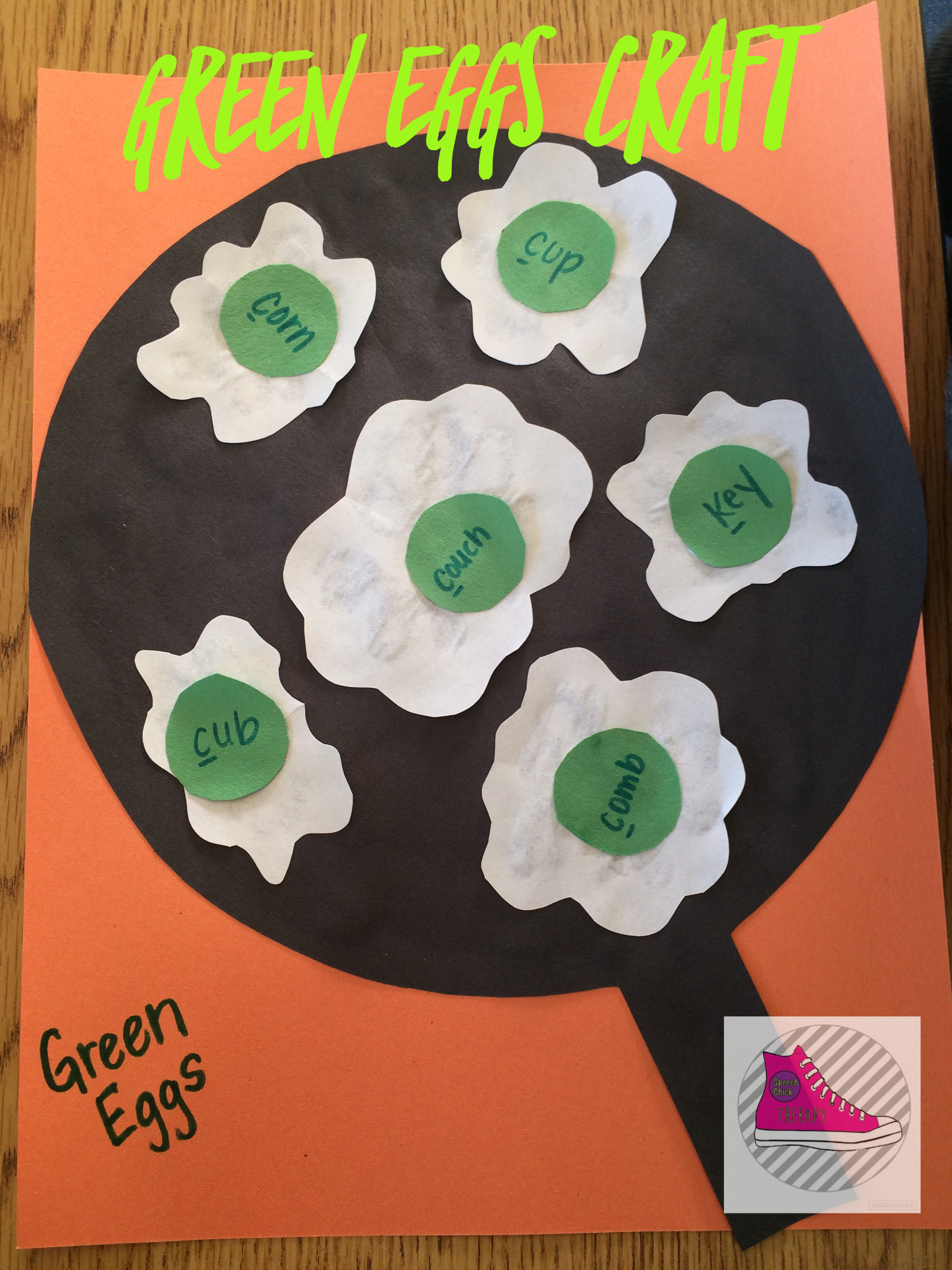 This is, by far, my favorite book in the Dr. Seuss collection! (Maybe because I am a lot like the bitter character who refuses to try the green eggs and ham!) I like to use this one with my articulation clients. We read the book and then complete this little drill activity I made. You can find it here! The next session is filled with our “Green Eggs in a Skillet” craft activity. You can cut out a skillet from black paper or you can use a paper plate. I cut out small green circles and white “egg” shapes. I write target words on the green circles.