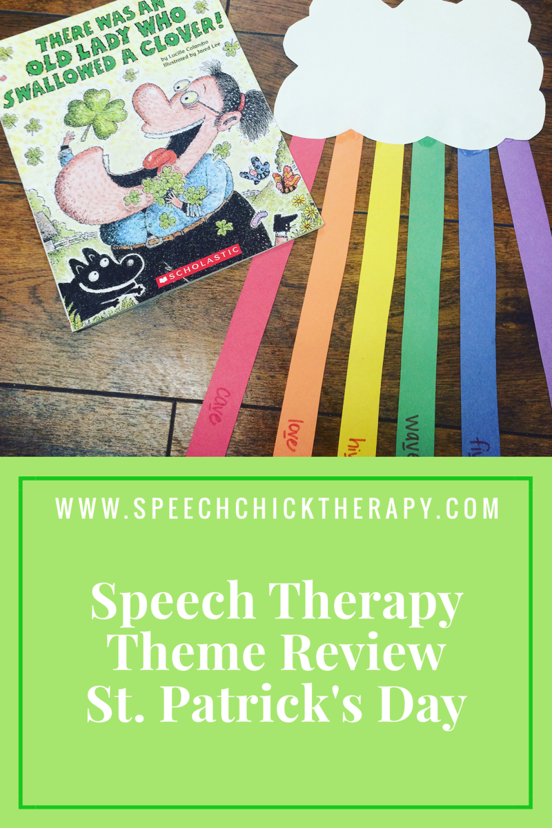 St. Patrick’s Day is such a fun theme to use in your speech therapy sessions. Maybe it’s the leprechauns or the rainbows or the much sought after pot of gold! We had fun this week with all things green and gold…and a little rainbow!