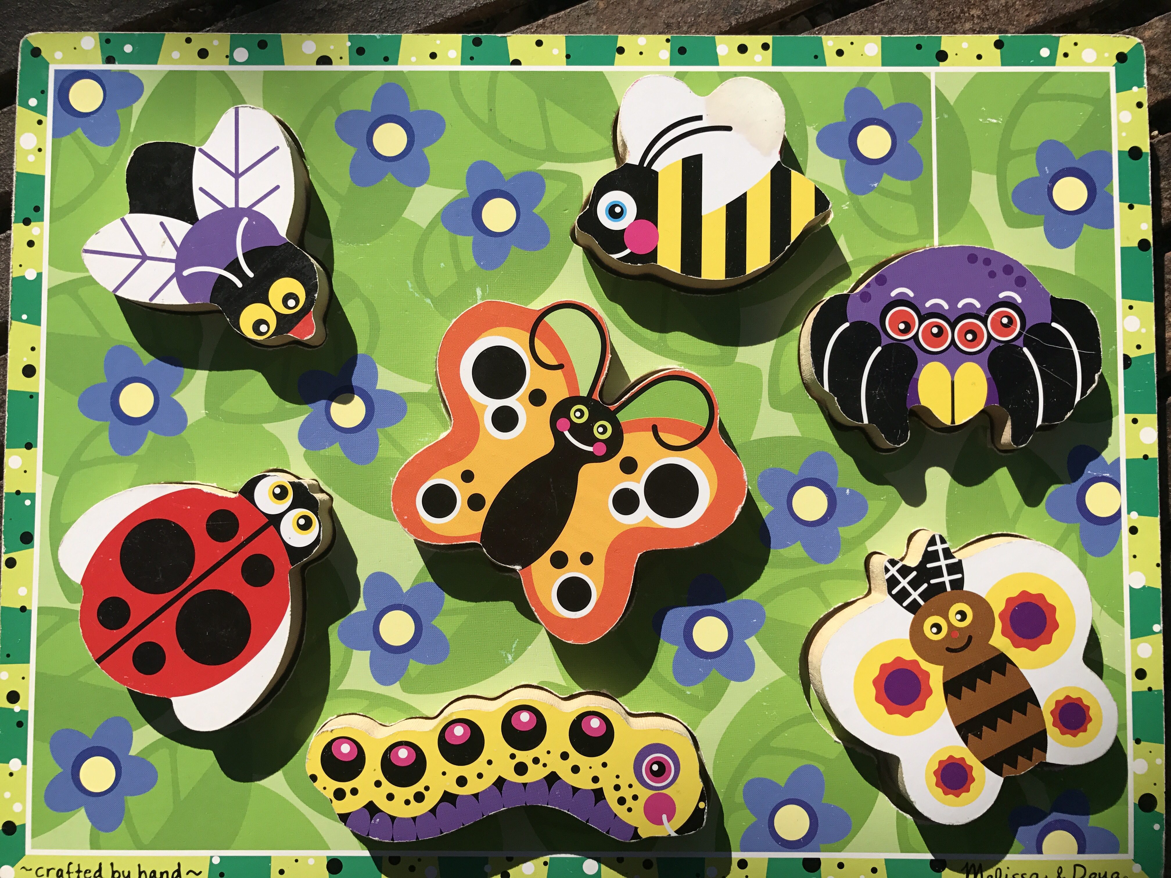 I love to use puzzles!! They are great for artic reinforcement, requesting, matching, increasing utterances and following directions…just to name a few! I have two Melissa and Doug insect puzzles. One is the chunky wooden one.
