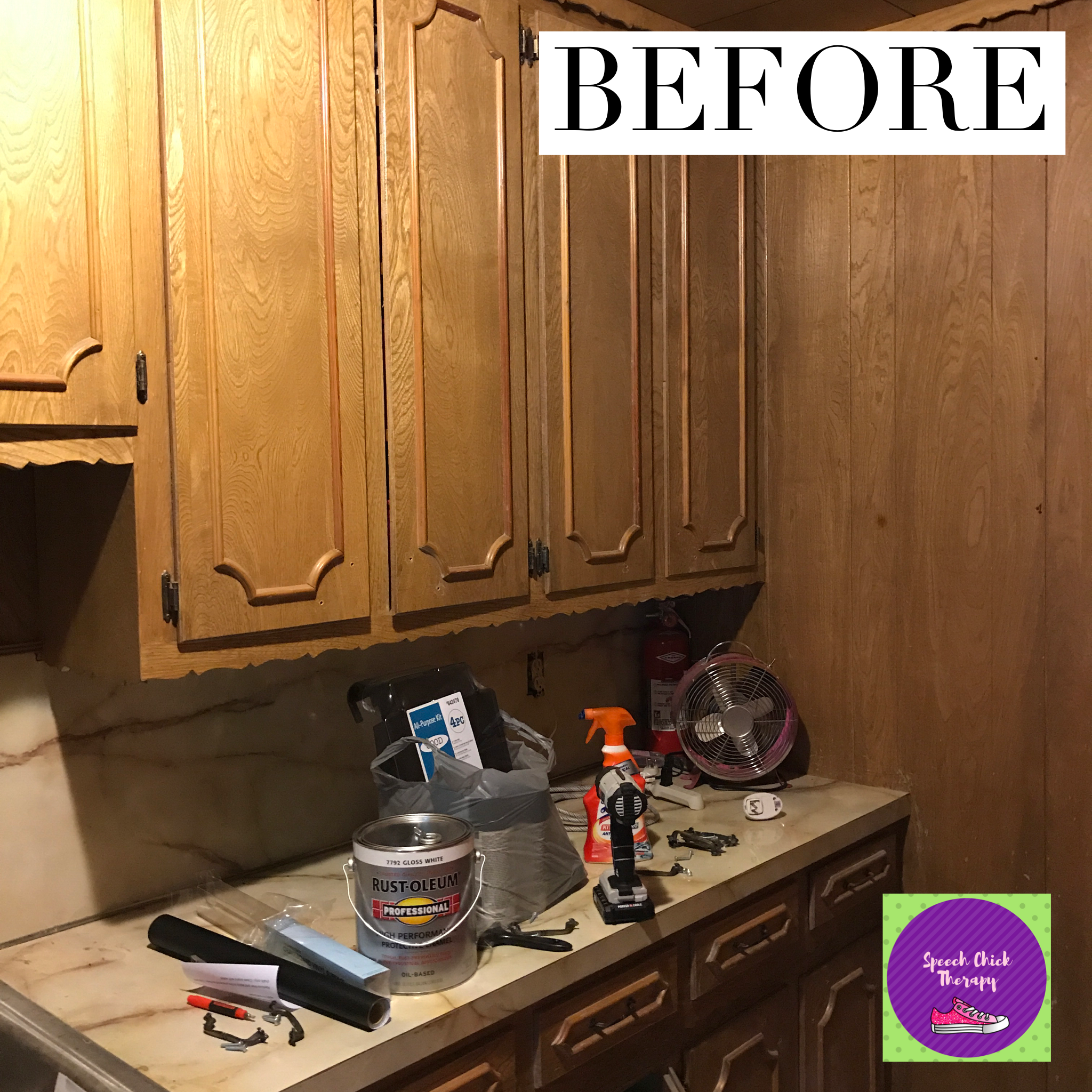 It was brown paneling with brown cabinets. Nothing to write home about. It was dark and uninspiring. I had been wanting to change it since we moved in but just didn’t have the time… until now!