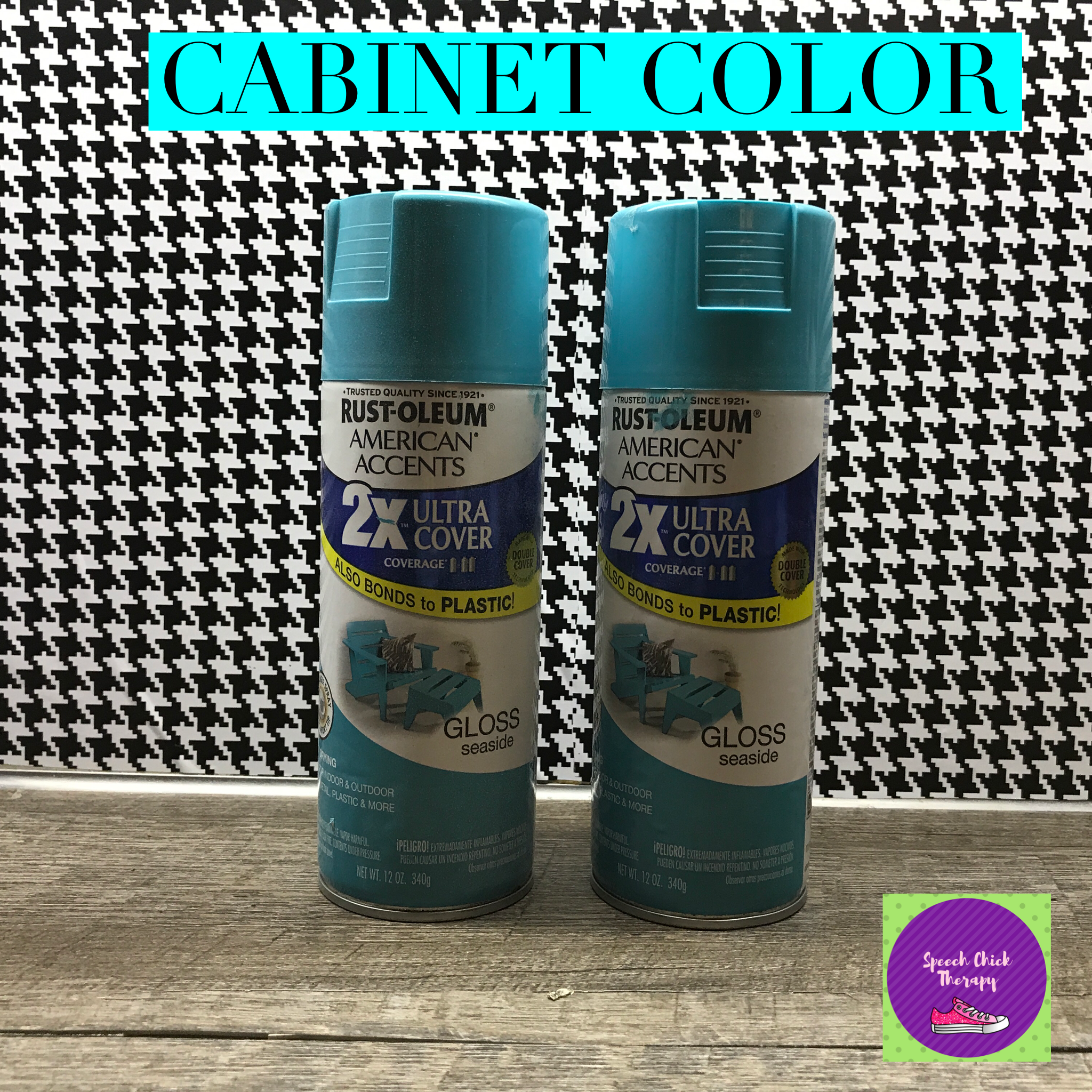I ran out of white paint just as it was time to paint the cabinets. Instead of running out to get paint, I used some leftover turquoise spray paint (Rust-oleum’s Seaside in Gloss) in my cabinet. I LOVED IT!!! This might be my most favorite part of this home office makeover!