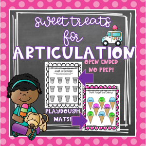 This resource has three activities that span over 30 pages. As I mentioned earlier, it does have an open ended sheet at the beginning. This can be easily used for teletherapy or distance learning. Use your annotation tool instead of crayons. There are also playdough mats that address each sound in all 3 positions of words. If you wish, you could always use red pompoms or a red dry erase marker. The last activity in this set targets only initial position of words (well at least at the time of this blog post being written). Each sound has 5 scoops the child can practice saying before they place it on their cone.