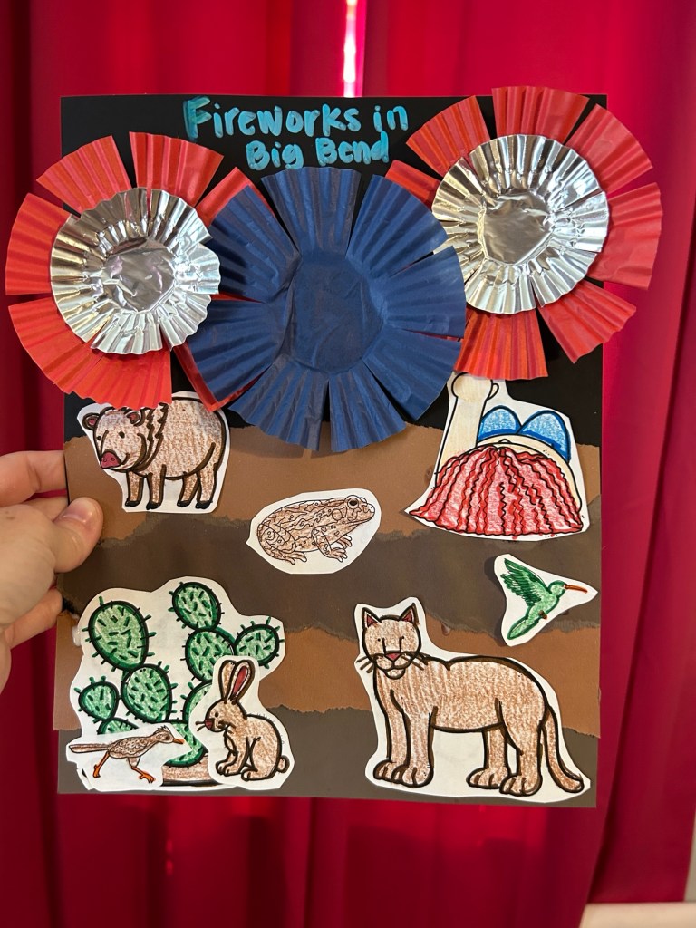 Our “day” in Big Bend this year happened to fall during July 4th week so we made our craft extra special for the holiday weekend. If you’ve never heard about Big Bend, it’s in far west Texas making it an excellent spot to stargaze. Today I’m sharing how we created our craft for the 4th of July. But I will also share how you can adapt it for a non-holiday craft. Read all the way to the end to see a bonus scavenger hunt if you choose to add an extra day to your stay.